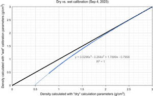 After final curation, the cores were taken to the multisensor core logger (MSCL) container (Figure F1) and placed in drawers in section order (Figure F3). The cores were labeled with the time of arrival to inform of the end of the 6 h temperature equilibration period required prior to MSCL logging (see Physical properties). The geochemistry team could access the cores within the equilibration period as required to sample potential sites identified for IW sampling with Rhizon syringes (see Geochemistry).
