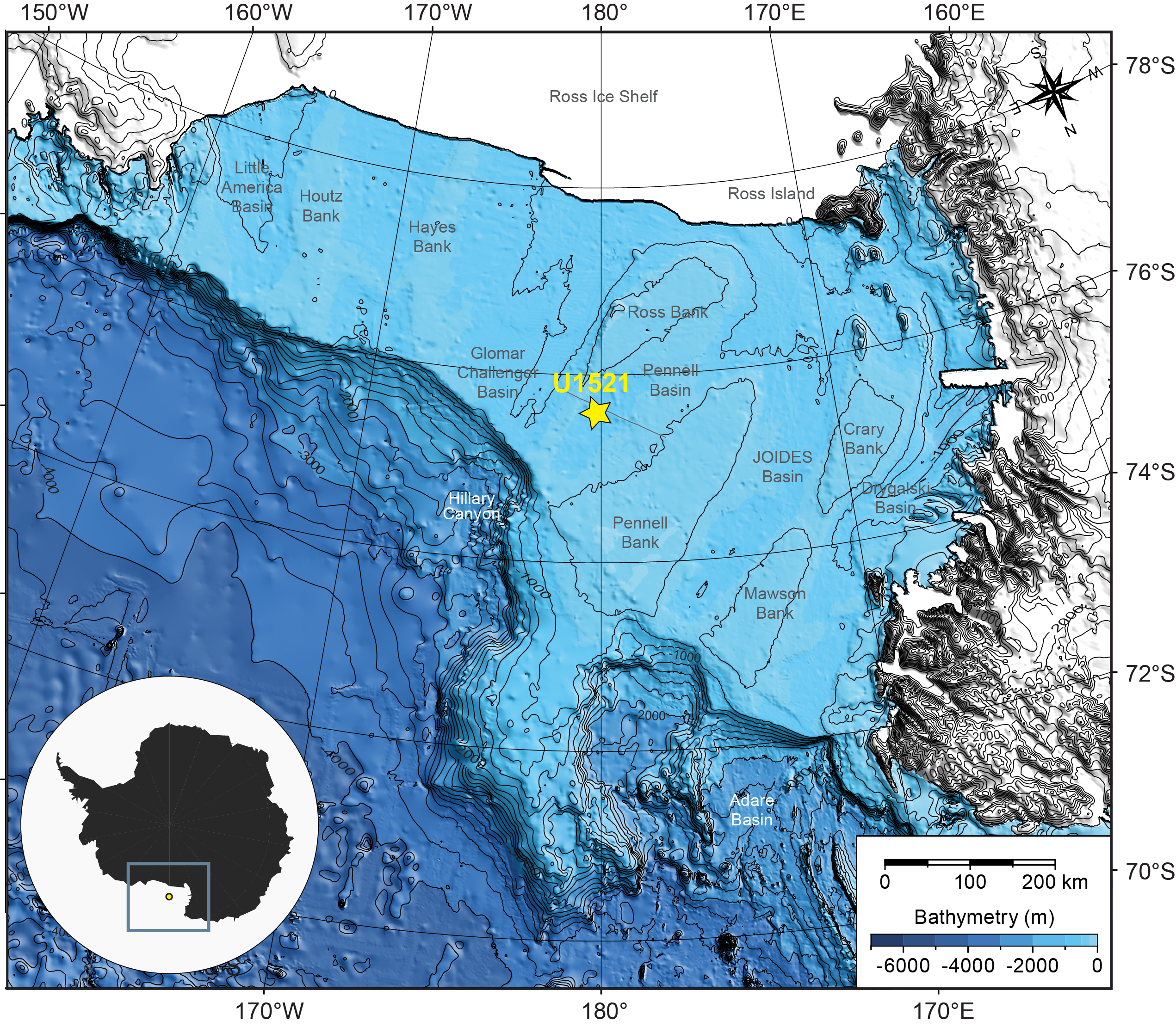 McKay, R.M., De Santis, L., Kulhanek, D.K., Ash, J.L., Beny, F., Browne, I.M., Cortese, G., Cordeiro de Sousa, I.M., Dodd, J.P., Esper, O.M., Gales, J.A., Harwood, D.M., Ishino, S., Keisling, B.A., Kim, S., Kim, S., Laberg, J.S., Leckie, R.M., Müller, J., Patterson, M.O., Romans, B.W., Romero, O.E., Sangiorgi, F., Seki, O., Shevenell, A.E., Singh, S.M., Sugisaki, S.T., van de Flierdt, T., van Peer, T.E., Xiao, W., and Xiong, Z., 2019b. Site U1521. In McKay, R.M., De Santis, L., Kulhanek, D.K., and the Expedition 374 Scientists, Ross Sea West Antarctic Ice Sheet History. Proceedings of the International Ocean Discovery Program, 374: College Station, TX (International Ocean Discovery Program). https://doi.org/10.14379/iodp.proc.374.103.2019
