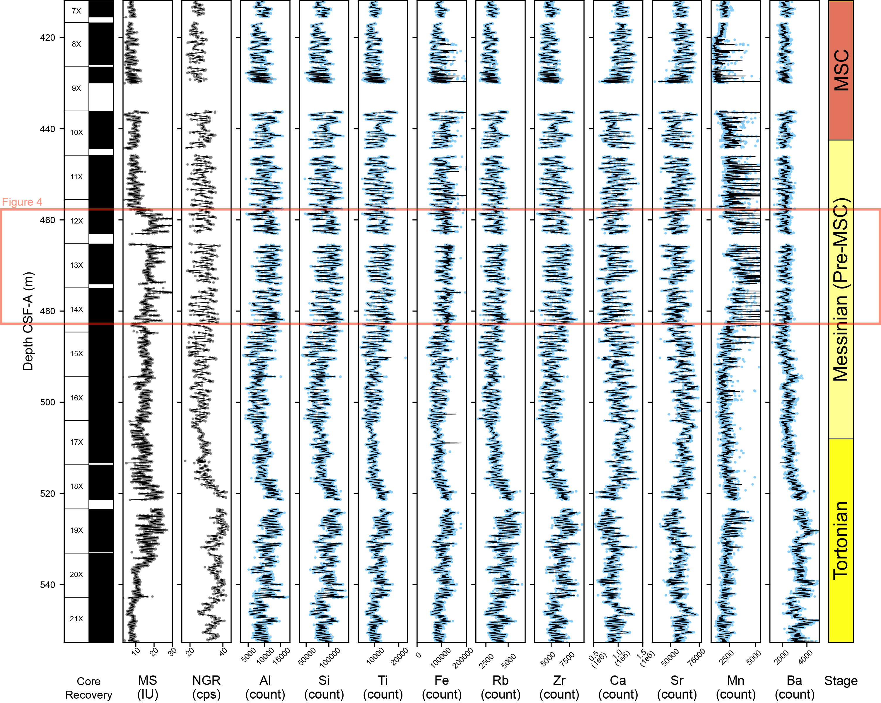 Xu, X., Stine, J., Standring, P., Hernández-Molina, F. J., Billy, I., Chin, S., Feakins, S.J., Li, Z., Mulligan, M., Noto, D., Raad, F., Teixeira, M., Yeon, J., Yousfi, M.Z., Zhang, Y., Flecker, R., Ducassou, E., Williams, T., and the Expedition 401 Scientists, 2026. Data report: X-ray fluorescence scanning of sediment cores, IODP Expedition 401 Site U1610, Gulf of Cádiz, Atlantic. In Flecker, R., Ducassou, E., Williams, T., and the Expedition 401 Scientists, Mediterranean–Atlantic Gateway Exchange. Proceedings of the International Ocean Discovery Program, 401: College Station, TX (International Ocean Discovery Program). https://doi.org/10.14379/iodp.proc.401.203.2026