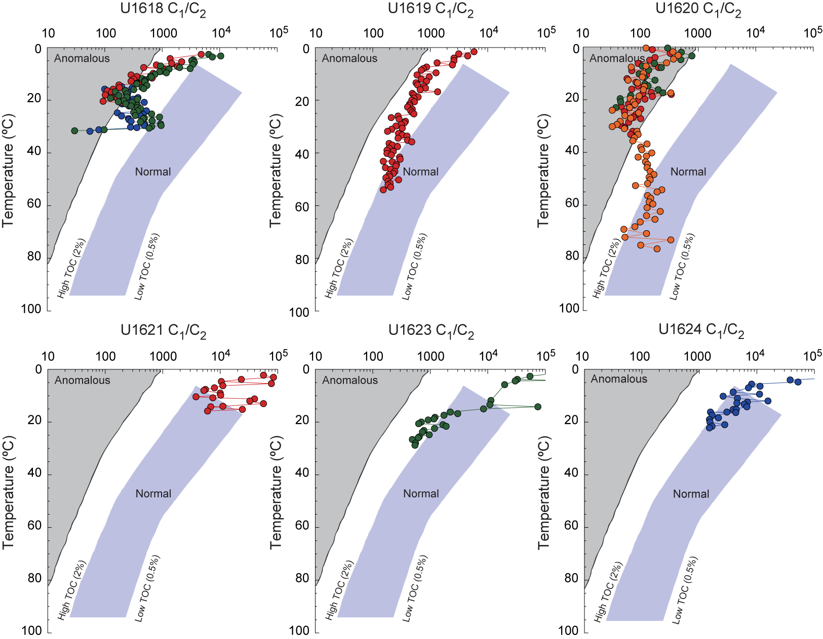 Pimmel, A., and Claypool, G., 2001. Technical Note 30: Introduction to shipboard organic geochemistry on the JOIDES Resolution. Ocean Drilling Program. https://doi.org/10.2973/odp.tn.30.2001