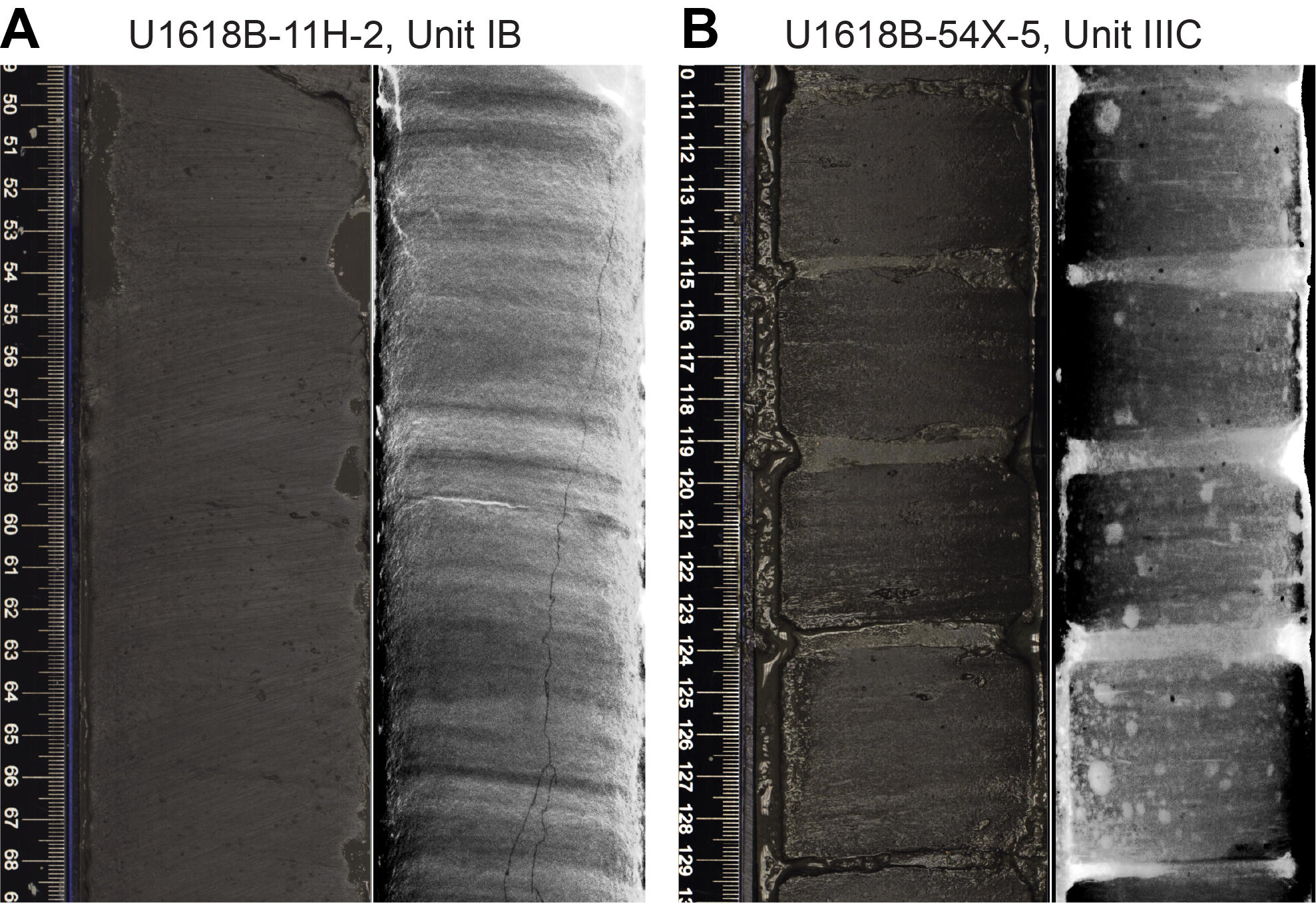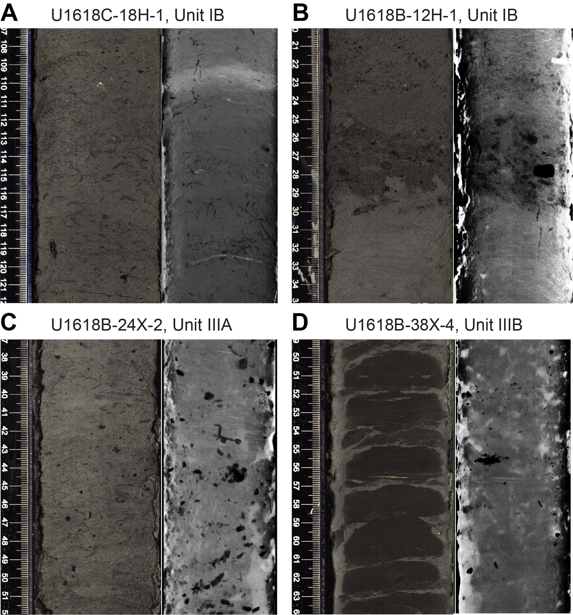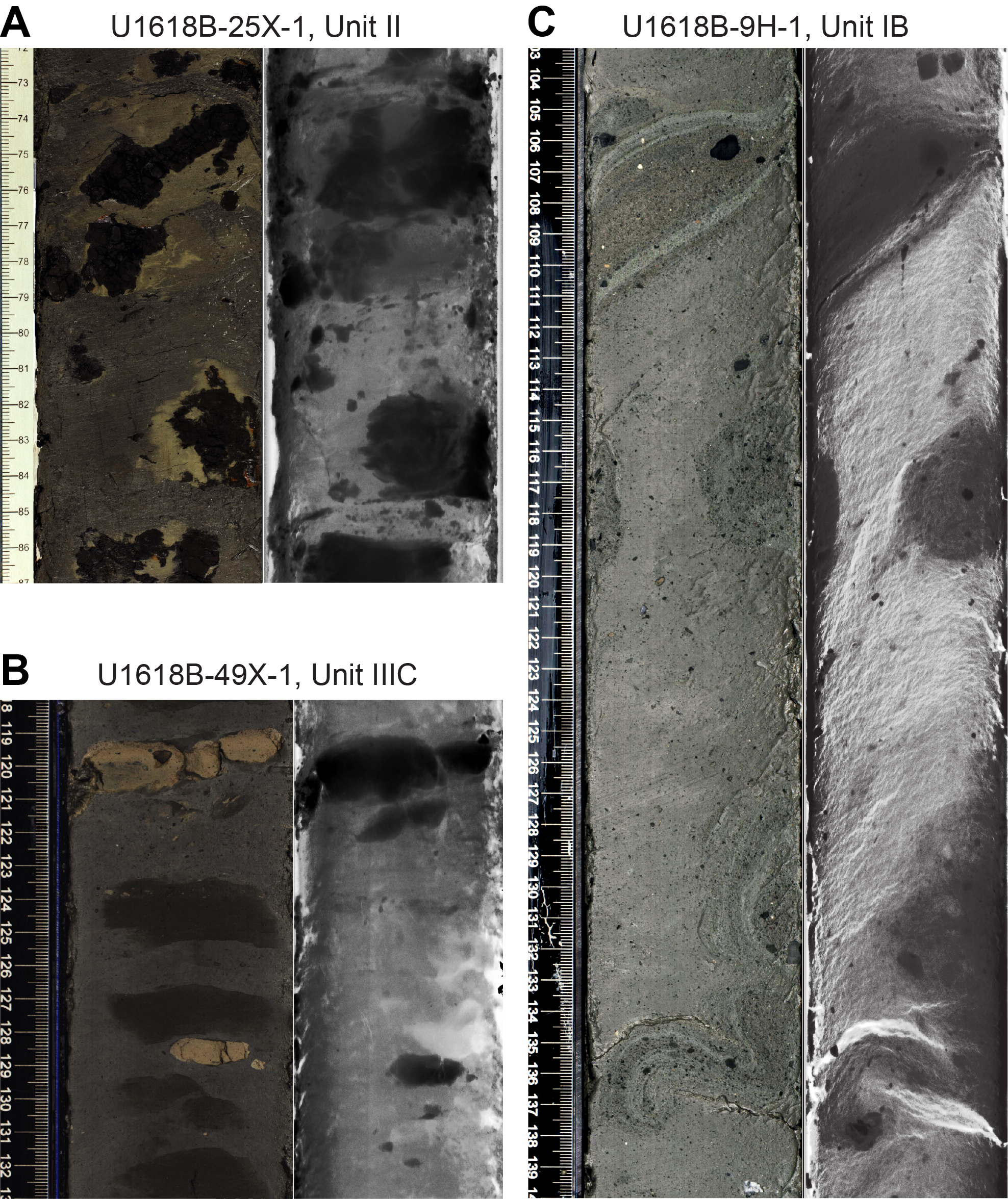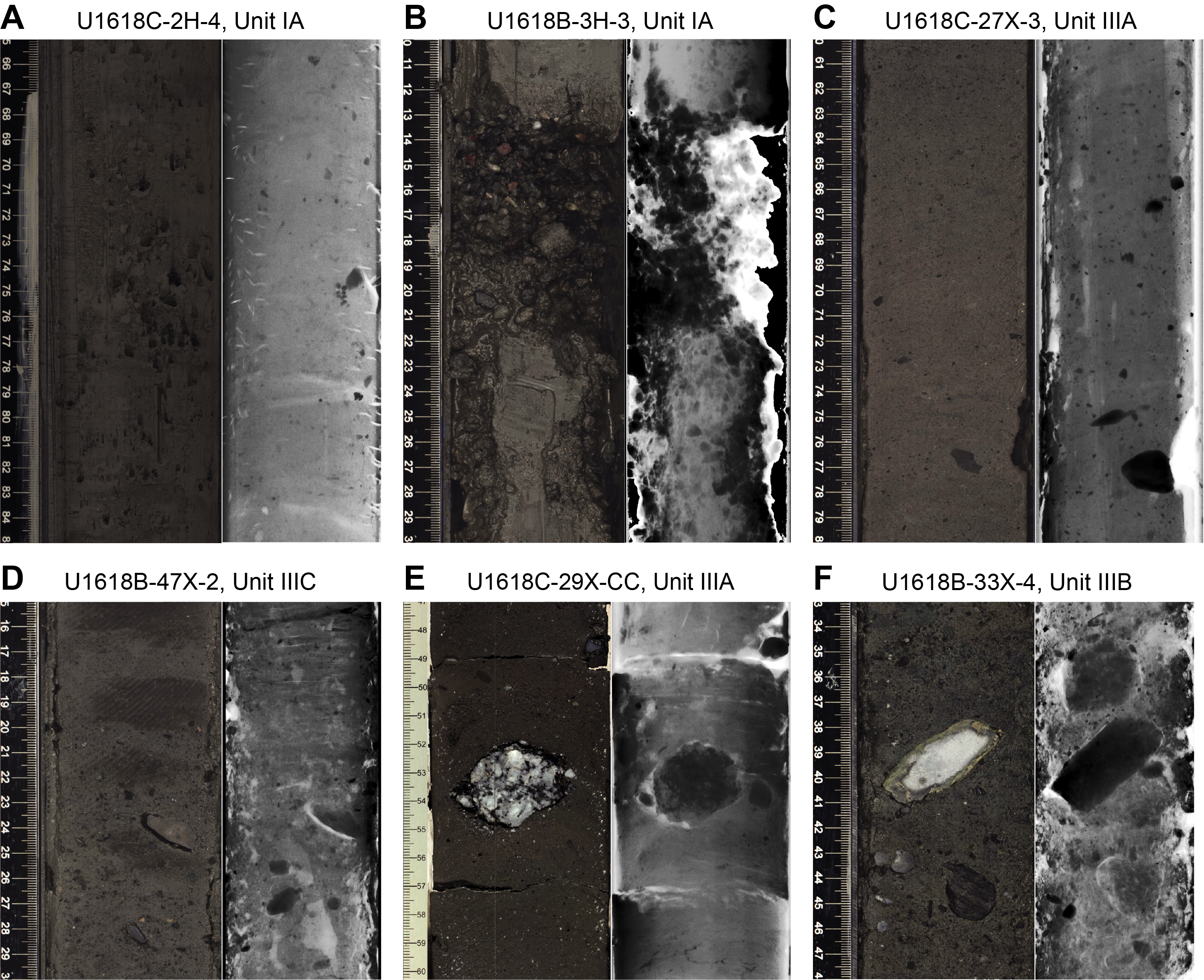 The sediments from Site U1618 exhibit similarities to those from the nearest ODP site location (Site 912; Shipboard Scientific Party, 1995). However, lithologic analysis of X-radiographs, coupled with the physical property and geochemical data, revealed new notable information in sediment characteristics.