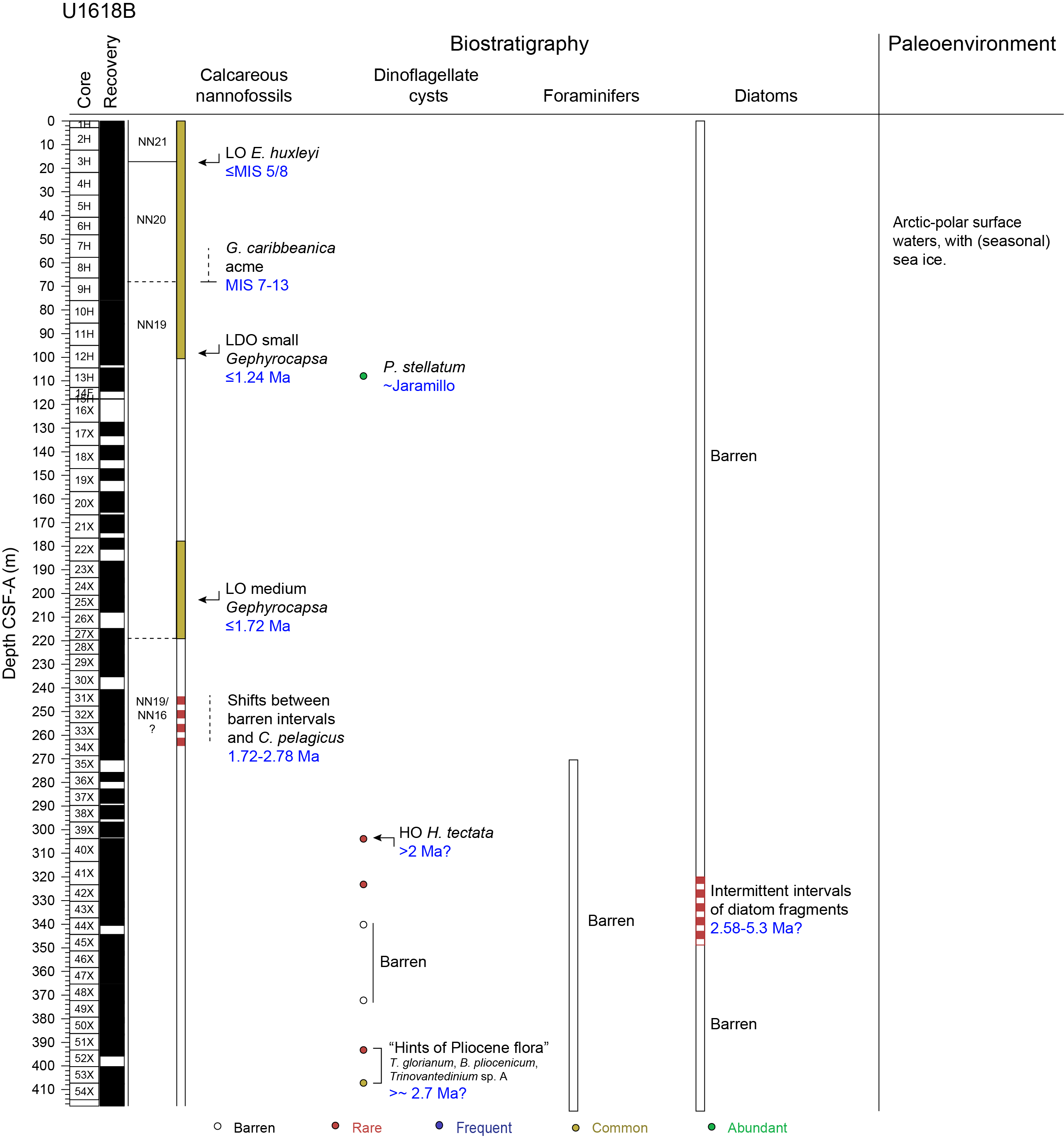 1 Lucchi, R.G., St. John, K.E.K., Ronge, T.A., Barcena, M.A., De Schepper, S., Duxbury, L.C., Gebhardt, A.C., Gonzalez-Lanchas, A., Goss, G., Greco, N.M., Gruetzner, J., Haygood, L., Husum, K., Iizuka, M., Kapuge, A.K.I.U., Lam, A.R., Libman-Roshal, O., Liu, Y., Monito, L.R., Reilly, B.T., Rosenthal, Y., Sakai, Y., Sijinkumar, A.V., Suganuma, Y., and Zhong, Y., 2026. Site U1618. In Lucchi, R.G., St. John, K.E.K., Ronge, T.A., and the Expedition 403 Scientists, Eastern Fram Strait Paleo-Archive. Proceedings of the International Ocean Discovery Program, 403: College Station, TX (International Ocean Discovery Program). https://doi.org/10.14379/iodp.proc.403.103.2026