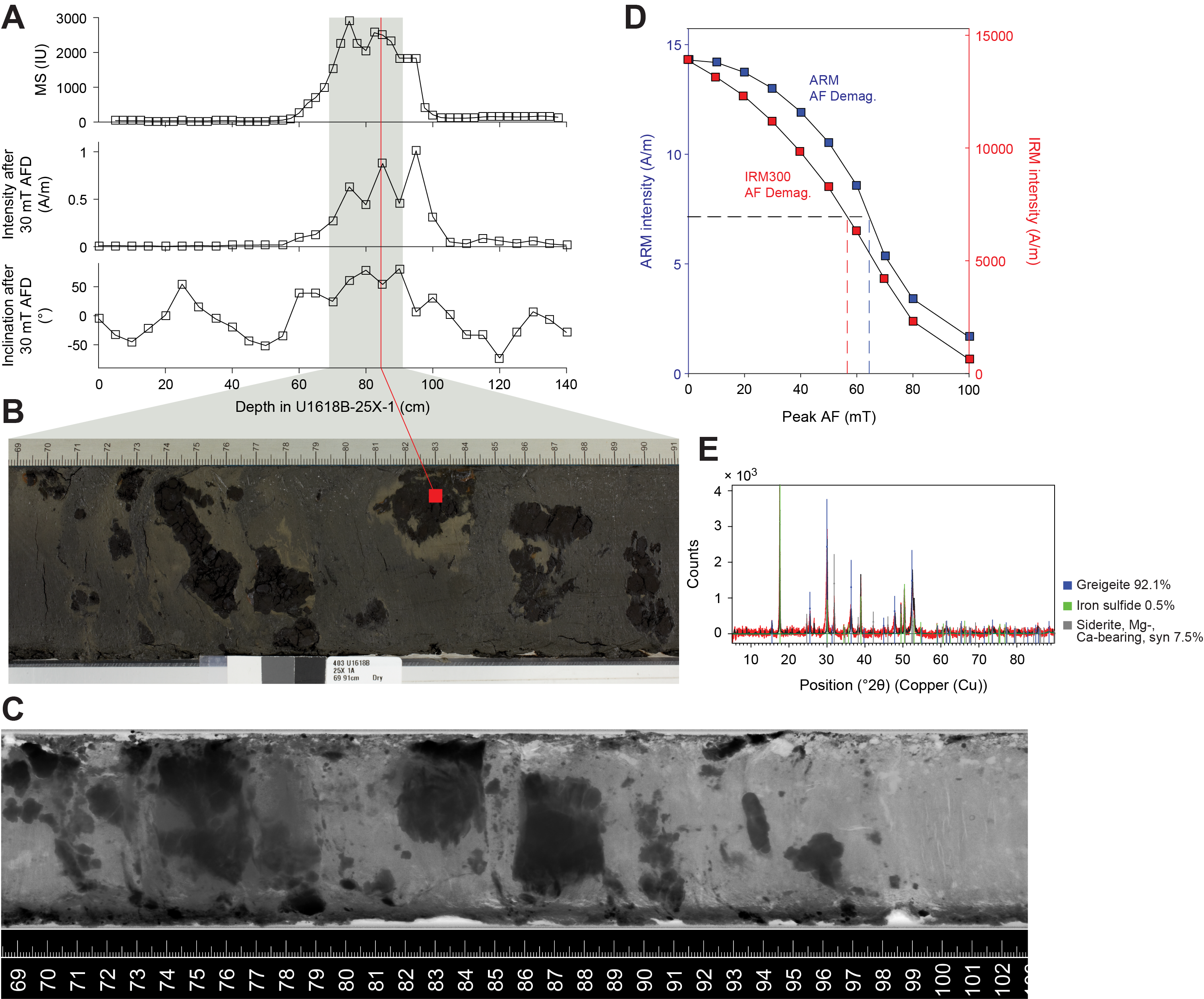 Caricchi, C., Lucchi, R.G., Sagnotti, L., Macrì, P., Di Roberto, A., Del Carlo, P., Husum, K., Laberg, J.S., and Morigi, C., 2019. A high-resolution geomagnetic relative paleointensity record from the Arctic Ocean deep-water gateway deposits during the last 60 kyr. Geochemistry, Geophysics, Geosystems, 20(5):2355–2377. https://doi.org/10.1029/2018GC007955