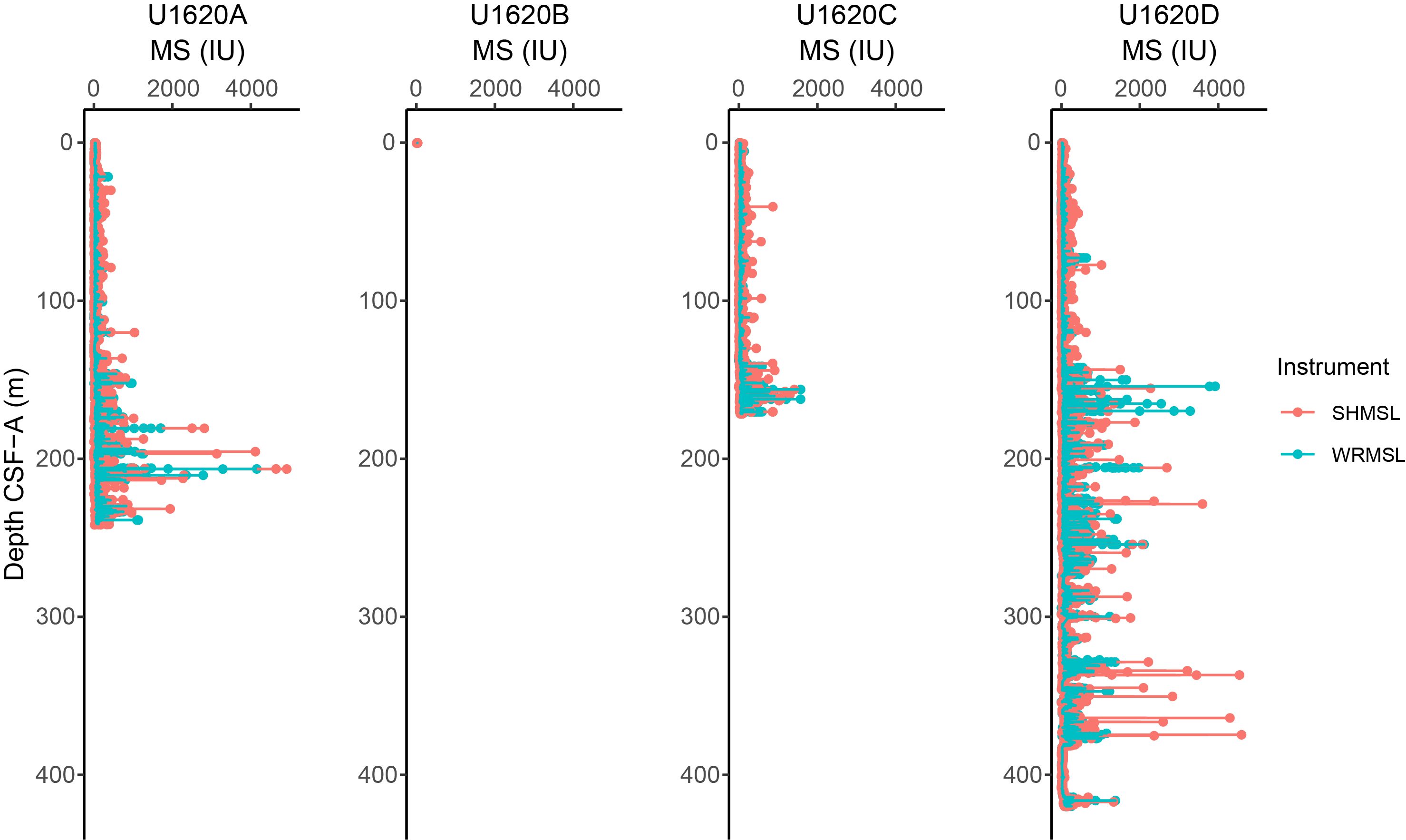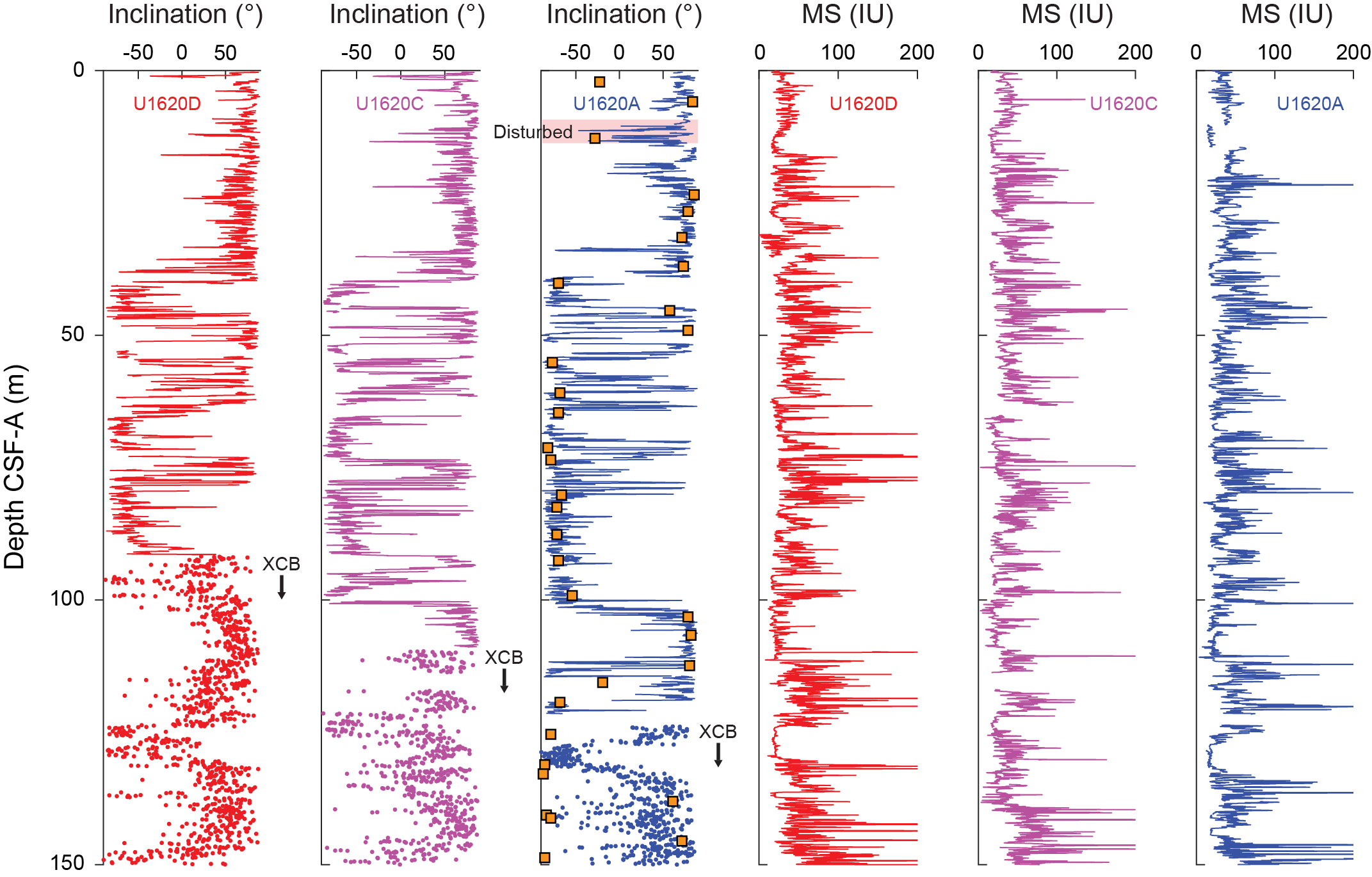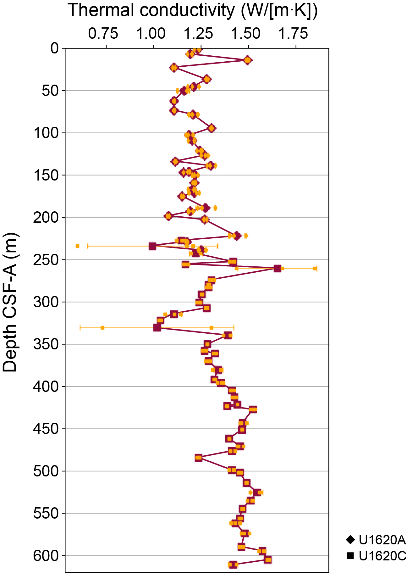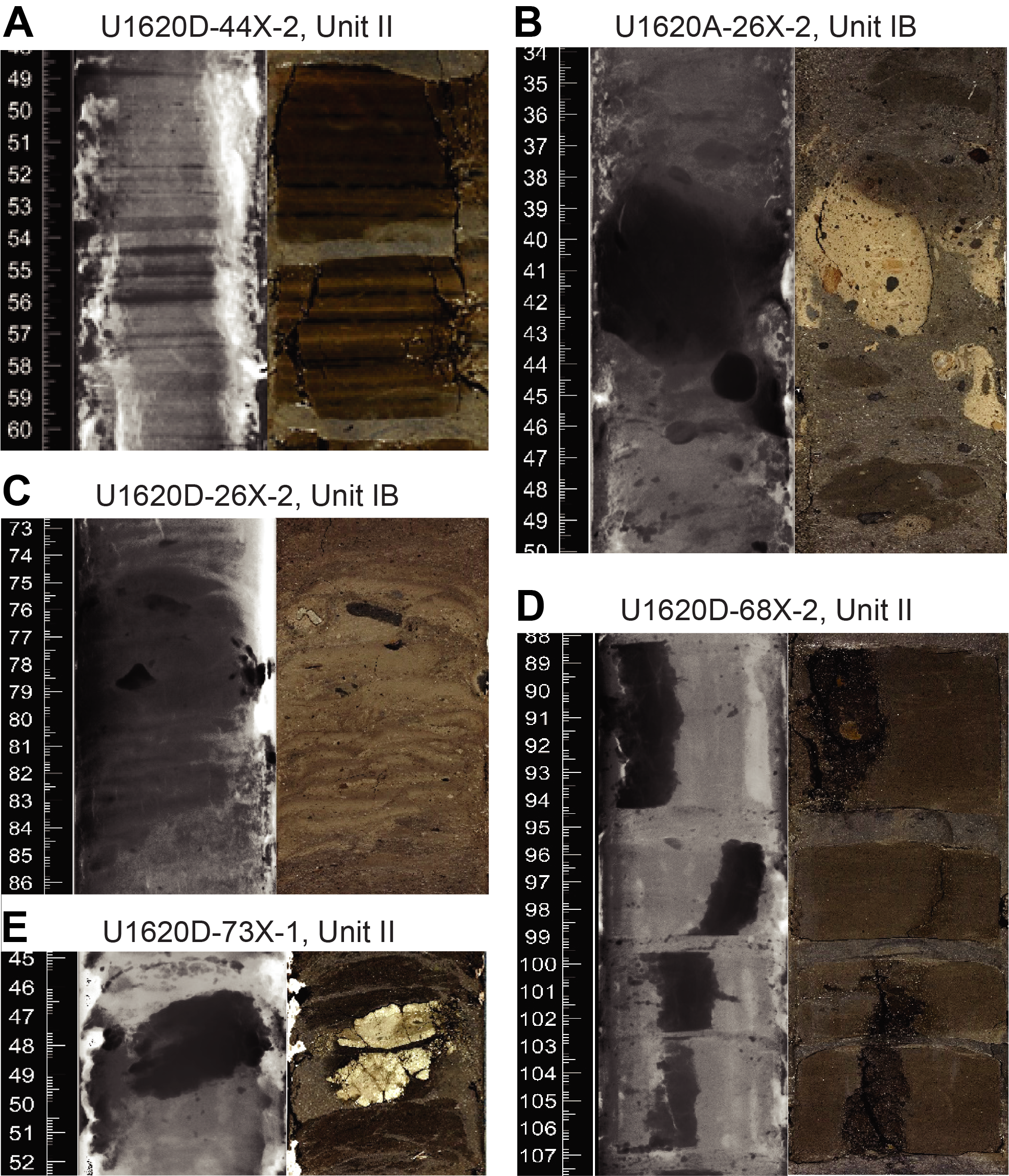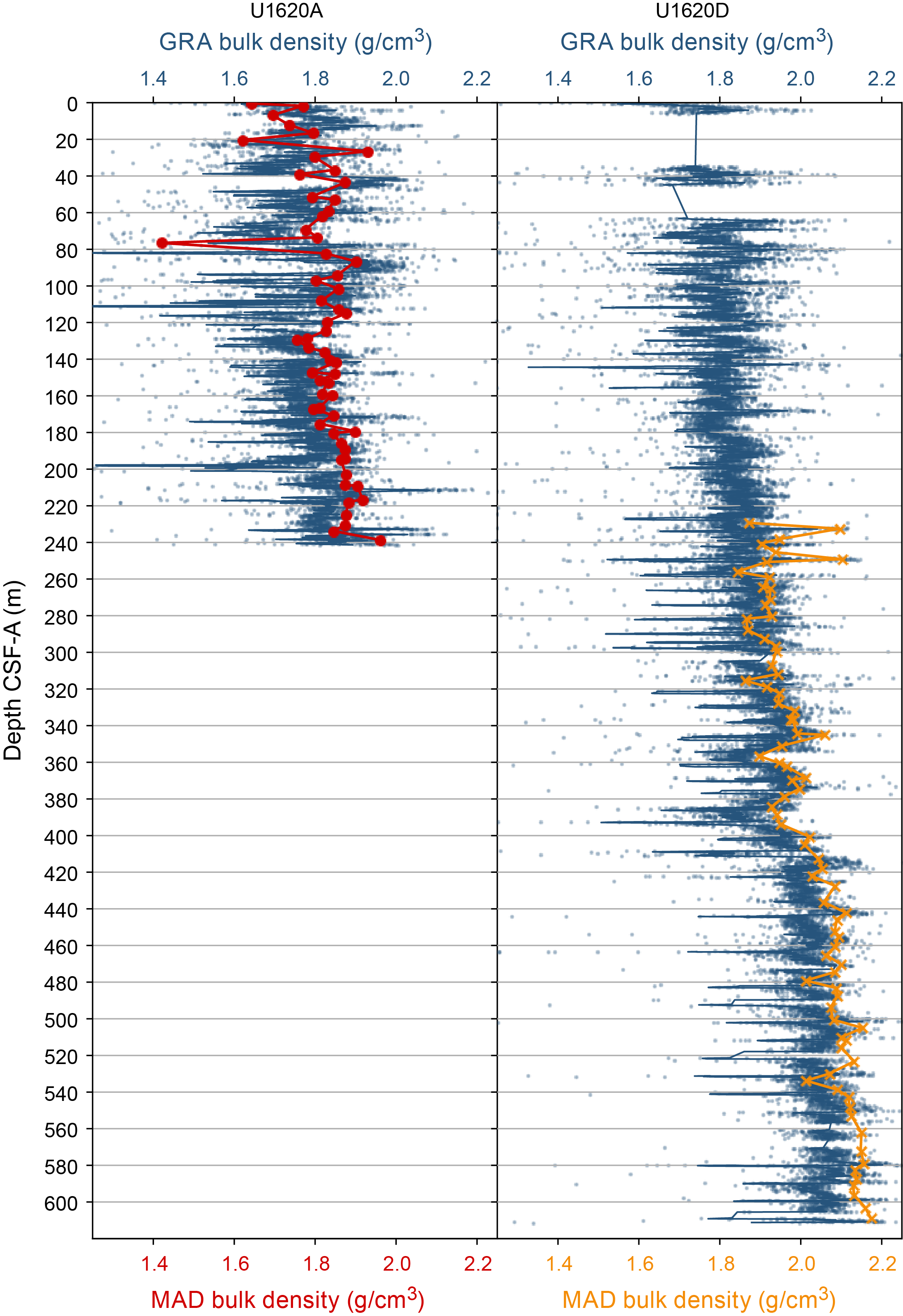 - Depths: Hole U1620A = 117.72–241.90 mbsf; Hole U1620C = 114.18–171.66 mbsf; Hole U1620D = 116.94–334.34 mbsf