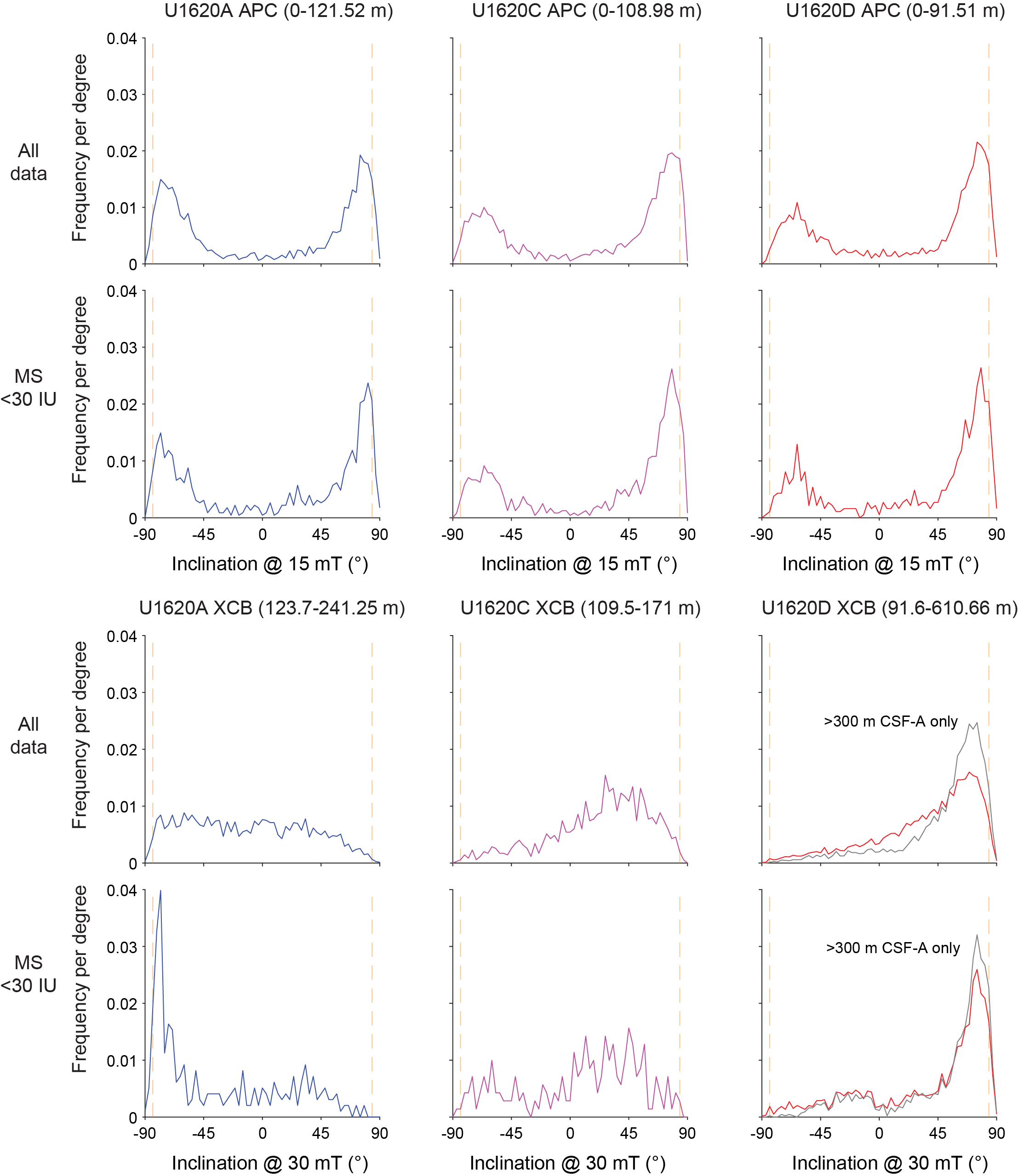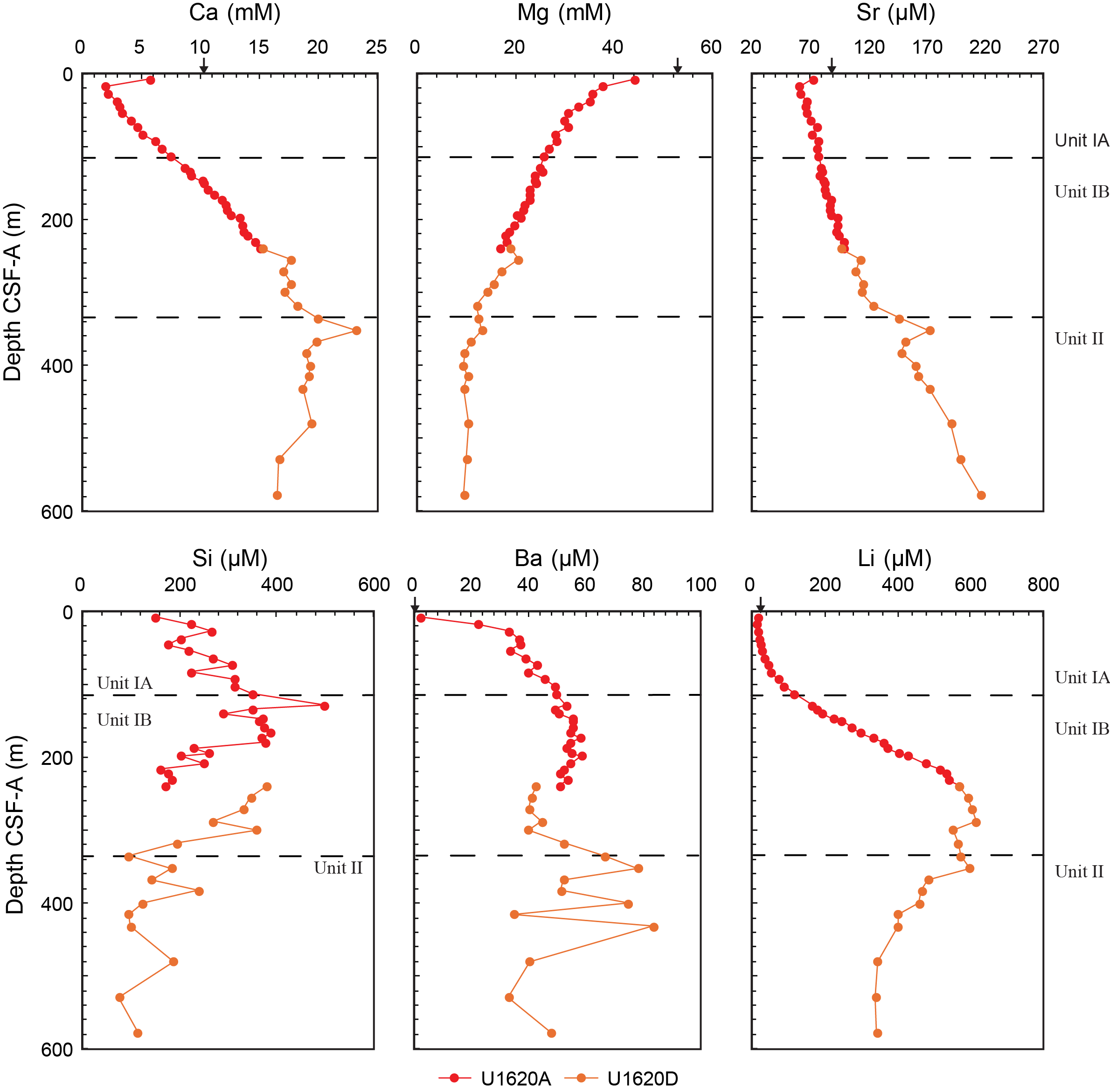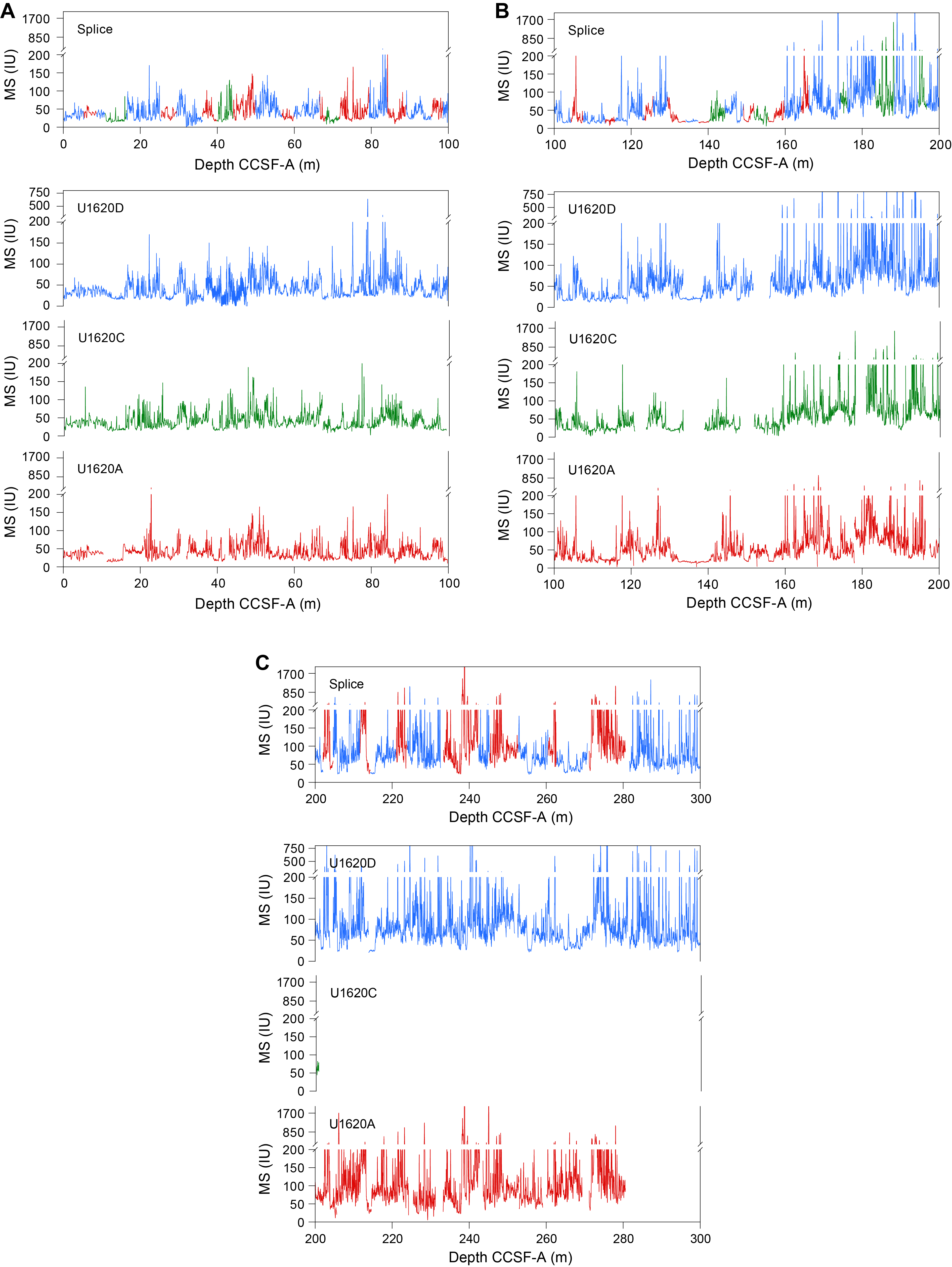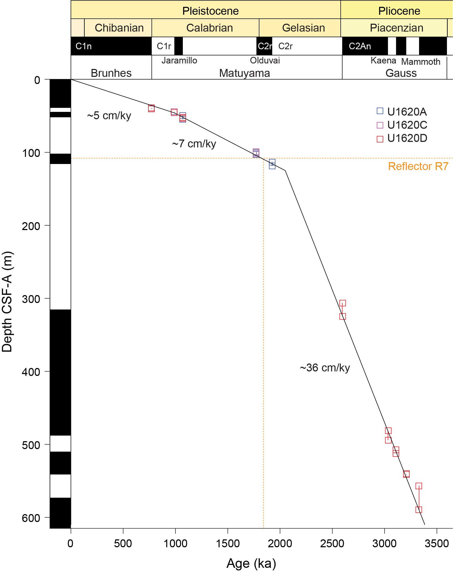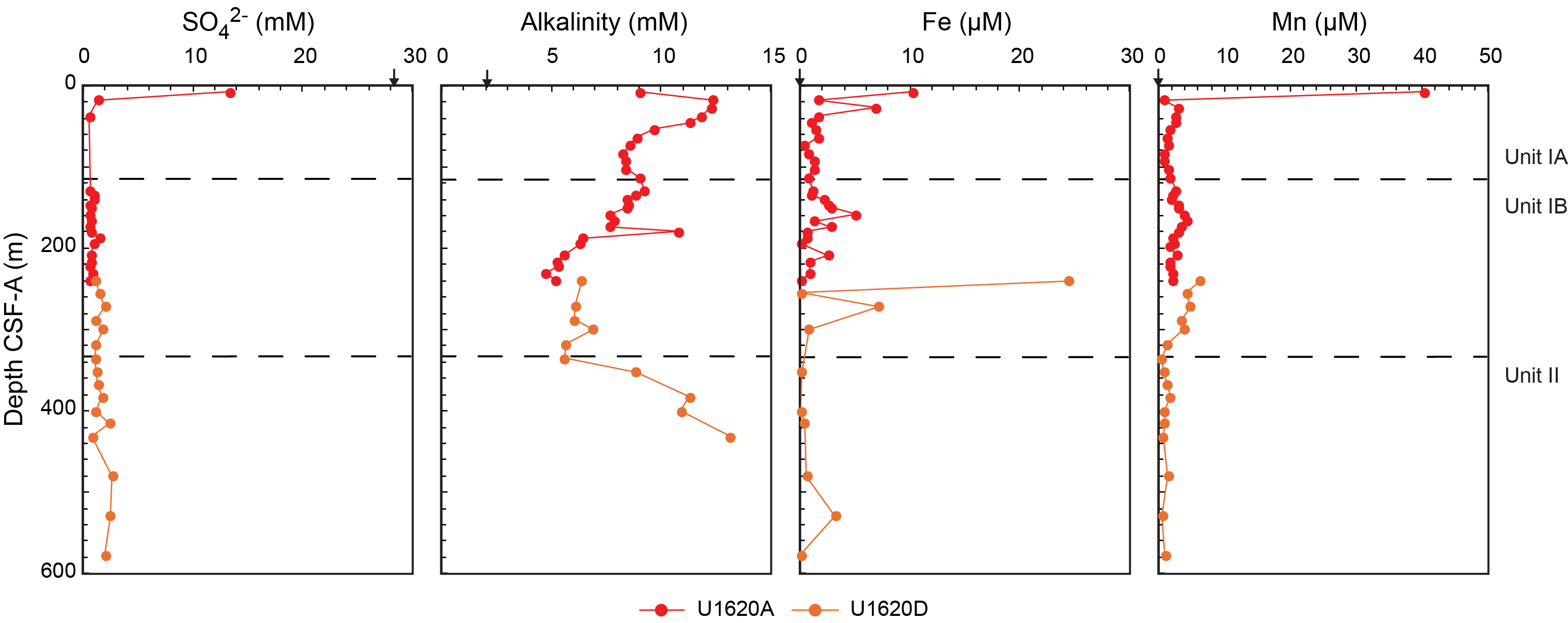 - Depths: Hole U1620A = 117.72–241.90 mbsf; Hole U1620C = 114.18–171.66 mbsf; Hole U1620D = 116.94–334.34 mbsf