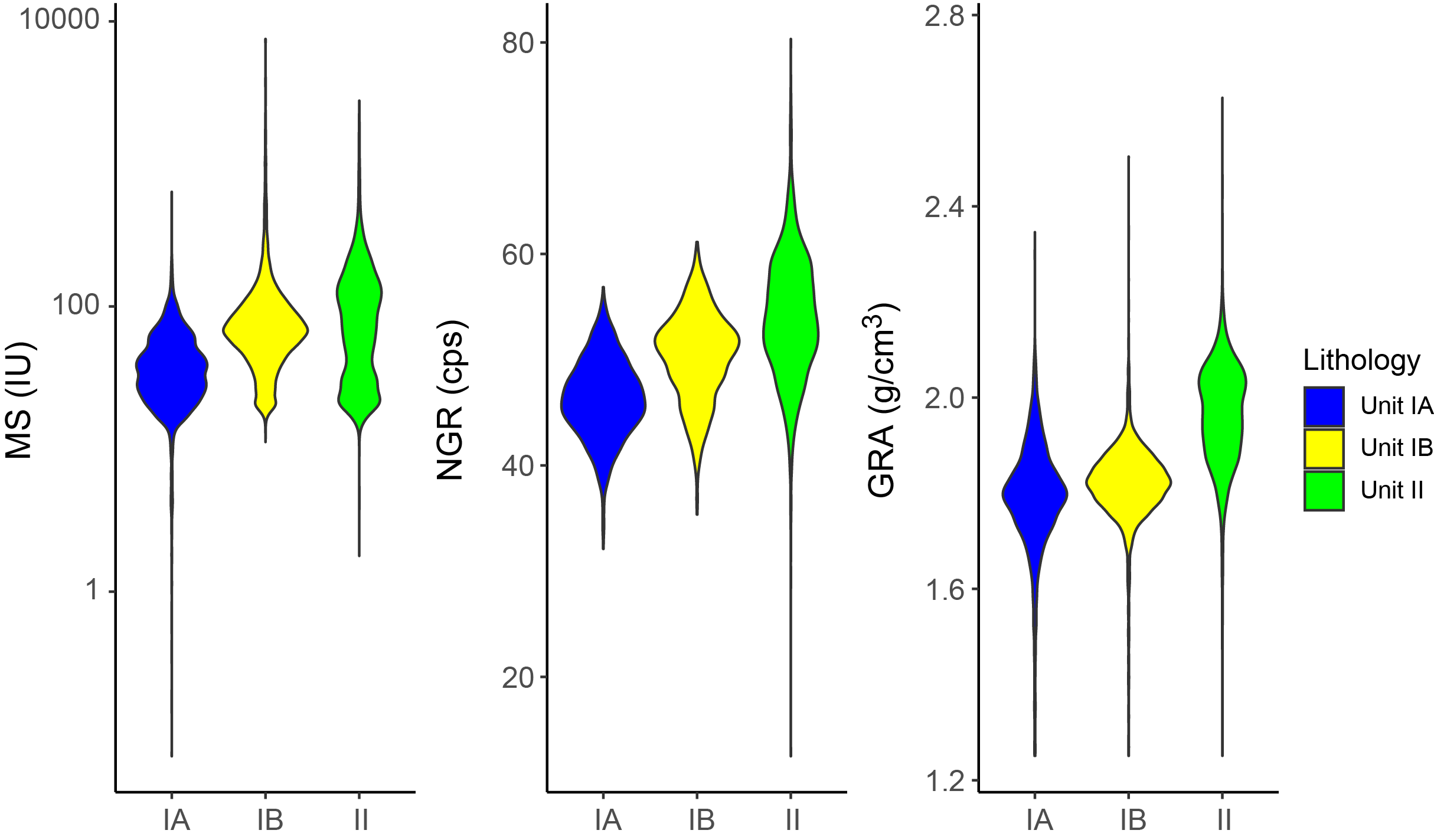 Logging data were sent for processing to the Lamont-Doherty Earth Observatory (LDEO; Columbia University, USA) (Figure F51; Table T14). The data provide important information for core-log integration to understand the actual depth and thickness of each lithostratigraphic unit because most cores at this site suffered from gas expansion.