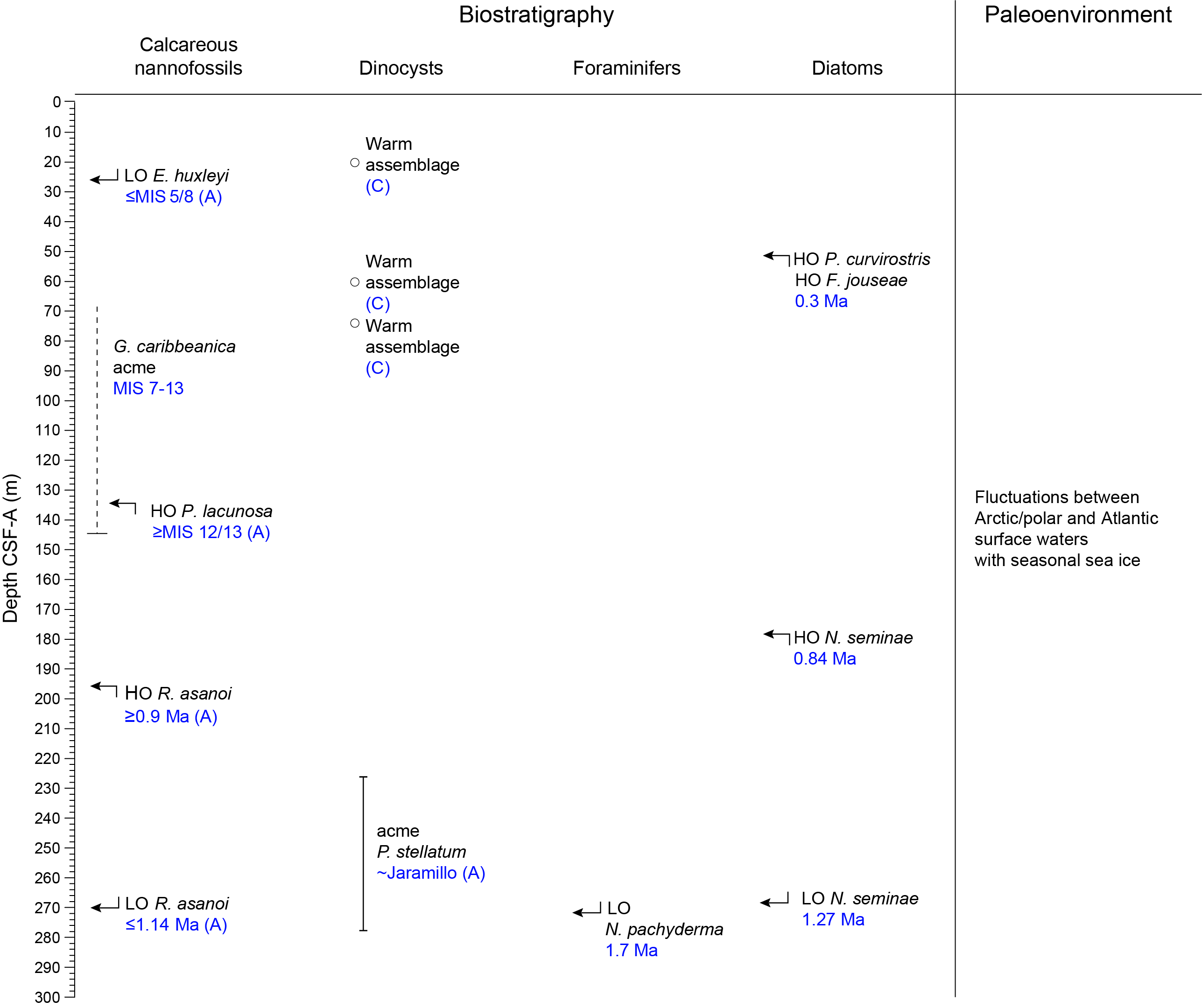 Backman, J., Raffi, I., Rio, D., Fornaciari, E., and Pälike, H., 2012. Biozonation and biochronology of Miocene through Pleistocene calcareous nannofossils from low and middle latitudes. Newsletters on Stratigraphy, 45(3):221–244. https://doi.org/10.1127/0078-0421/2012/0022