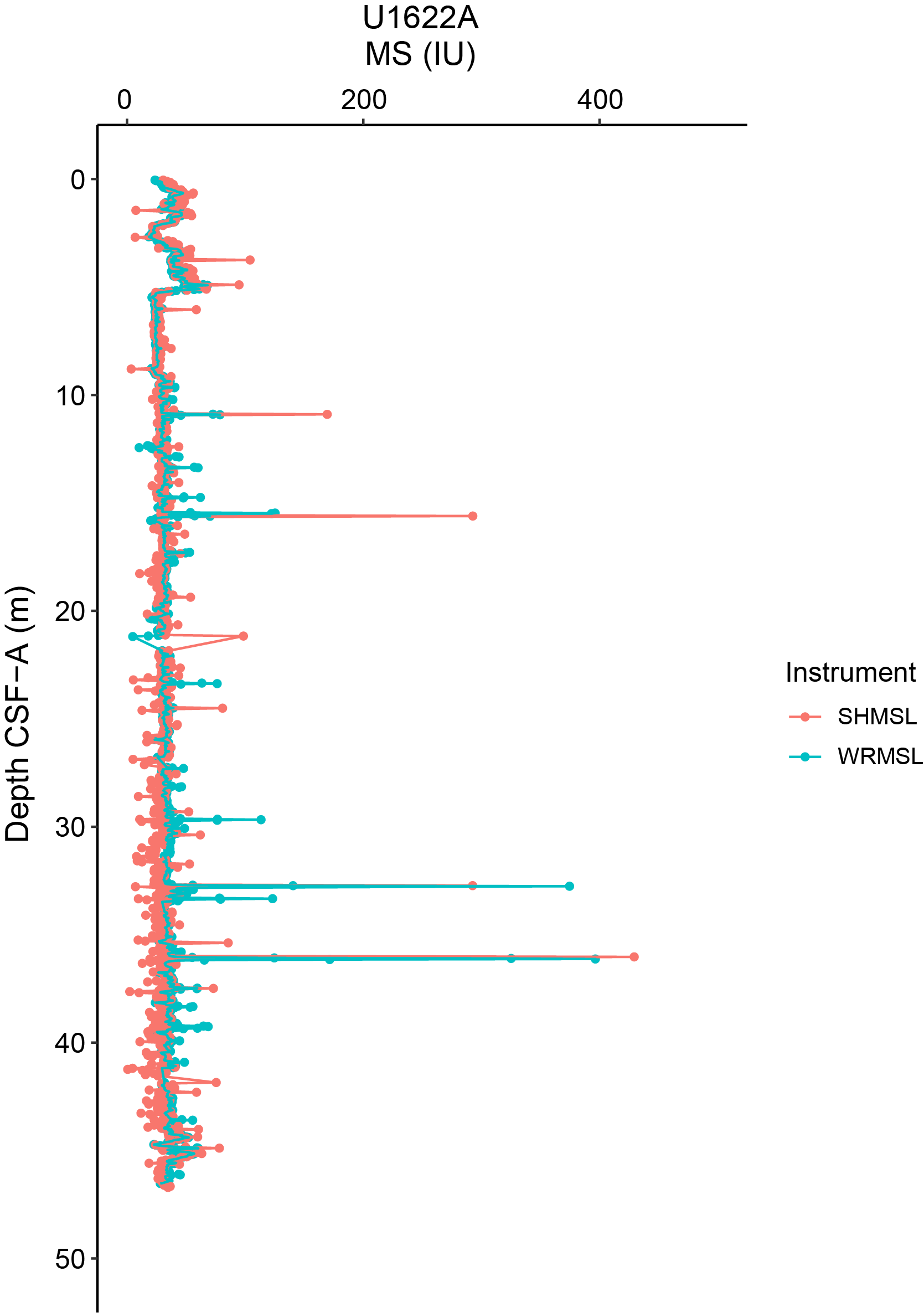 To more easily communicate shipboard results, core depth below seafloor, Method A (CSF-A), depths in this chapter are reported as mbsf unless otherwise noted.